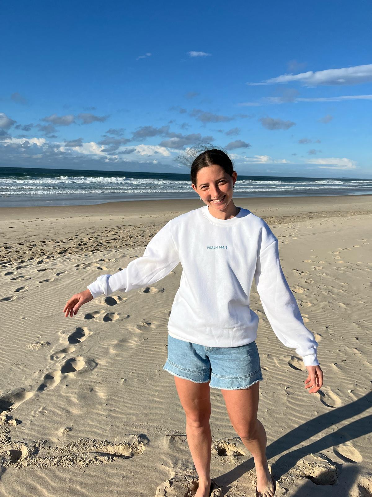 This beautifully designed piece features my original design. Crafted for comfort and purpose, this sweater is perfect for cool days, oceanside strolls, or quiet moments of reflection. A wearable reminder that the One who made the sea is the same God who holds you close.