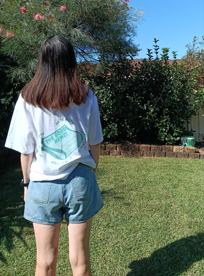 This is my original "Good News" design. The inspiration behind this shirt was the verse "He said to them, Go into all the world and preach the gospel to all creation," Mark 16:15.