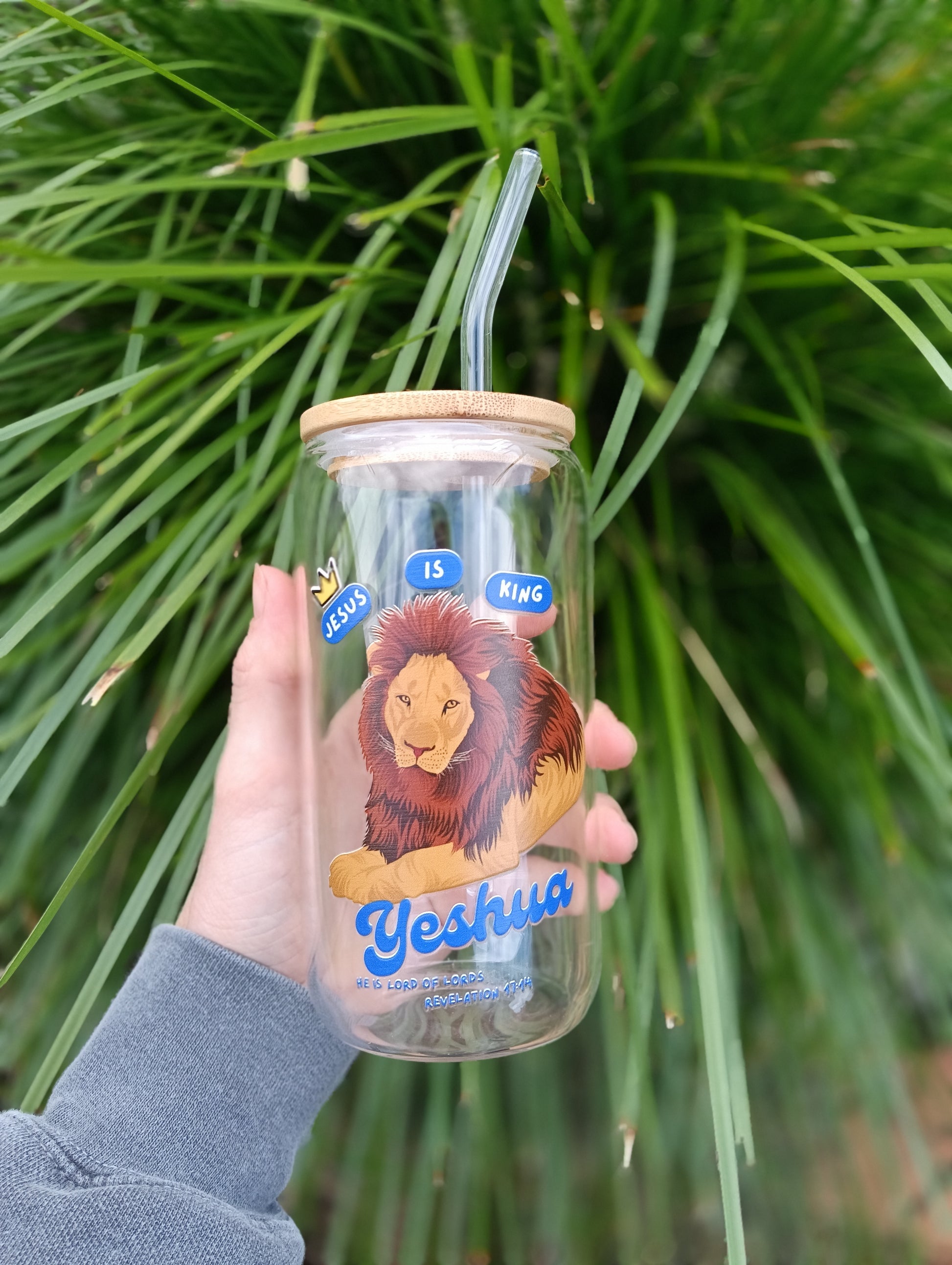 Jesus Is King Glass Tumbler with Straw
