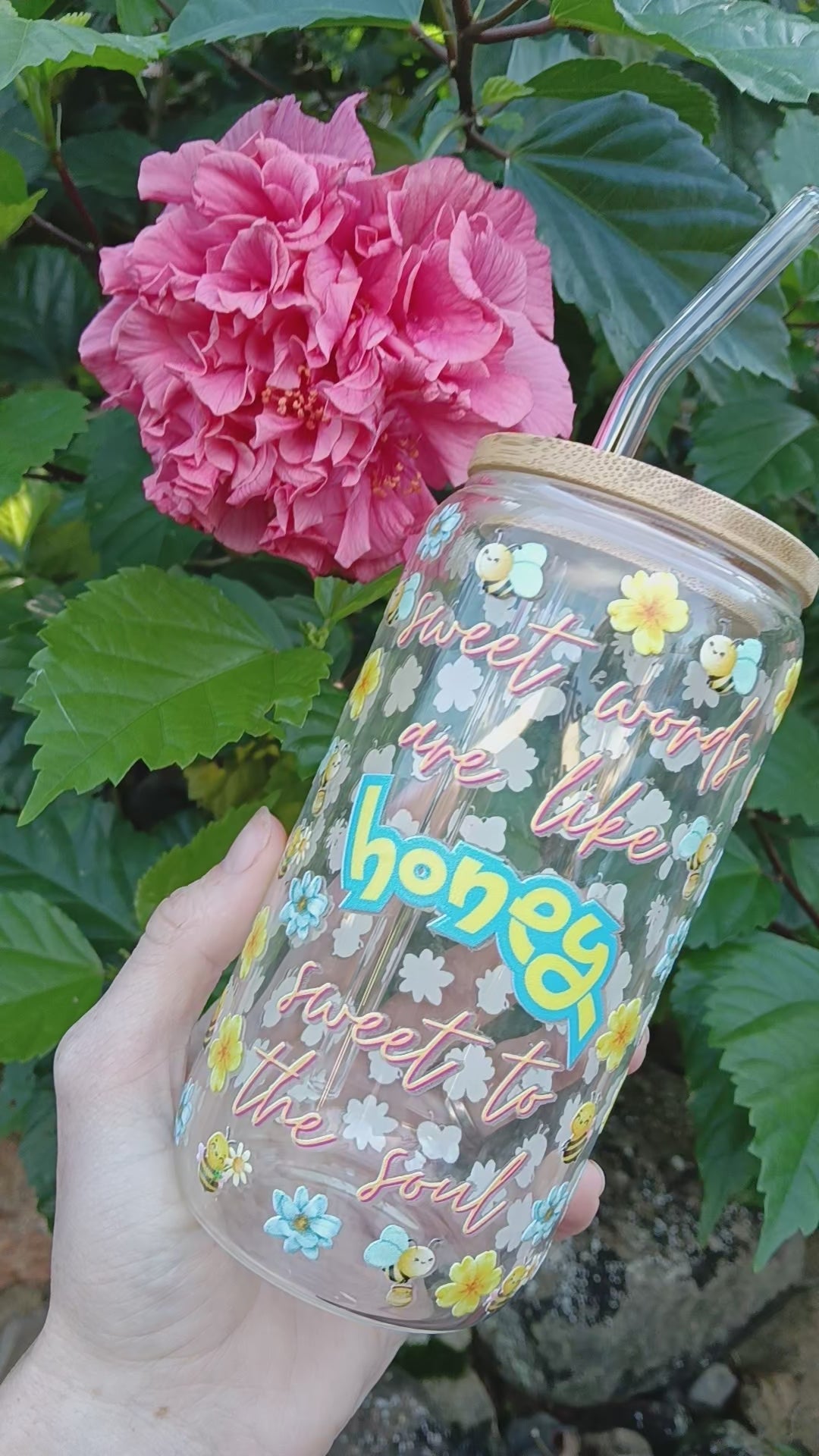 Yellow- Sweet Words Sweet Honey Glass Tumbler with straw